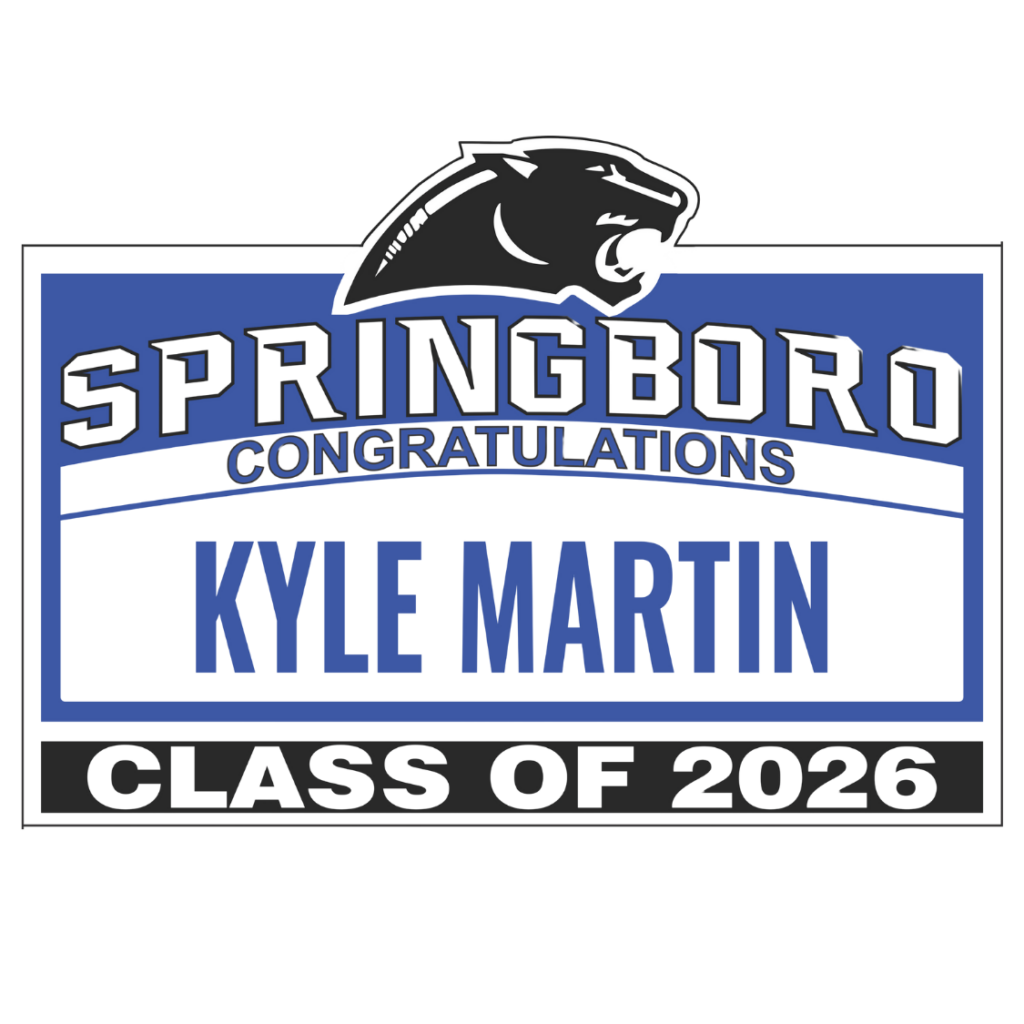 WHAT: Celebrate your senior with a personalized yard sign! Signs are printed full color on one side and are waterproof. Metal ground stakes are included. Yard Sign Size: 24″ wide x 16” tall.